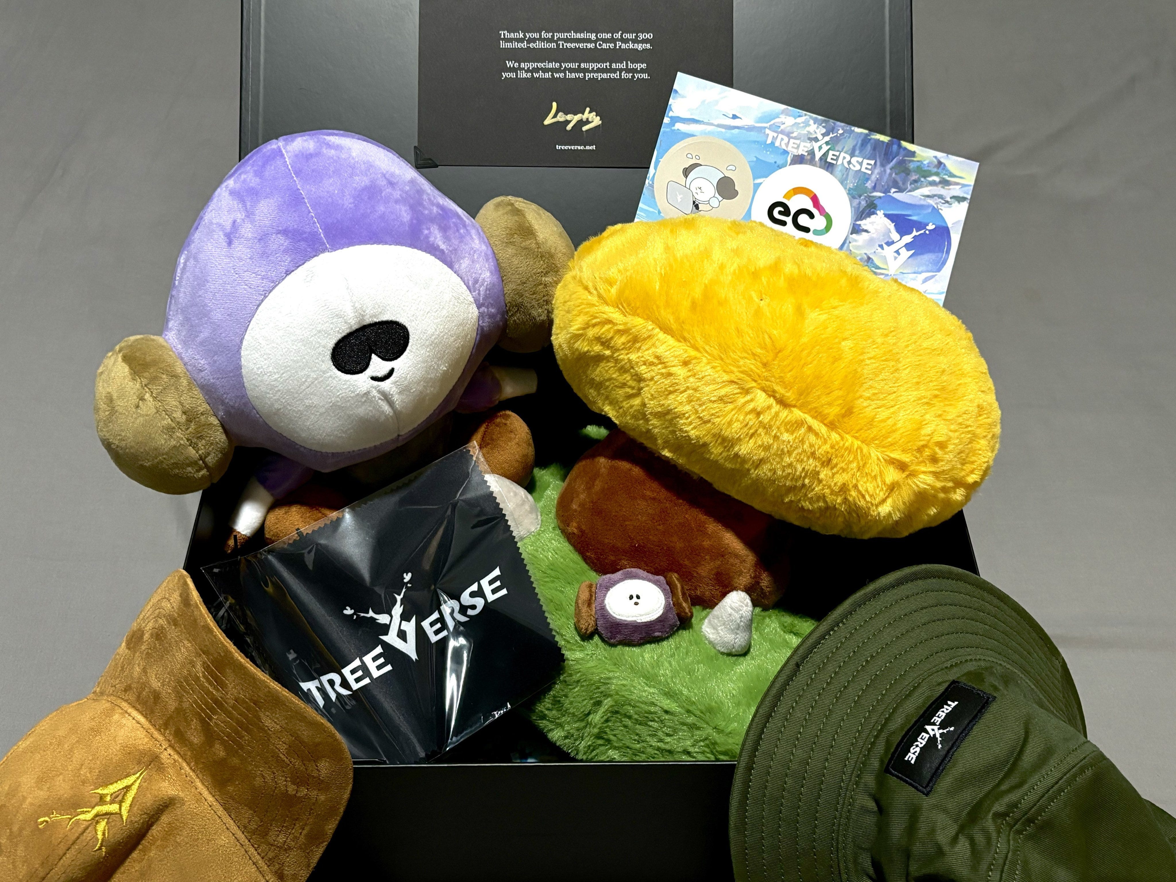 The Treeverse Care Package is our genesis physical collection limited to 300 pcs. But only 250 will be sold in this sale. It contains the following: